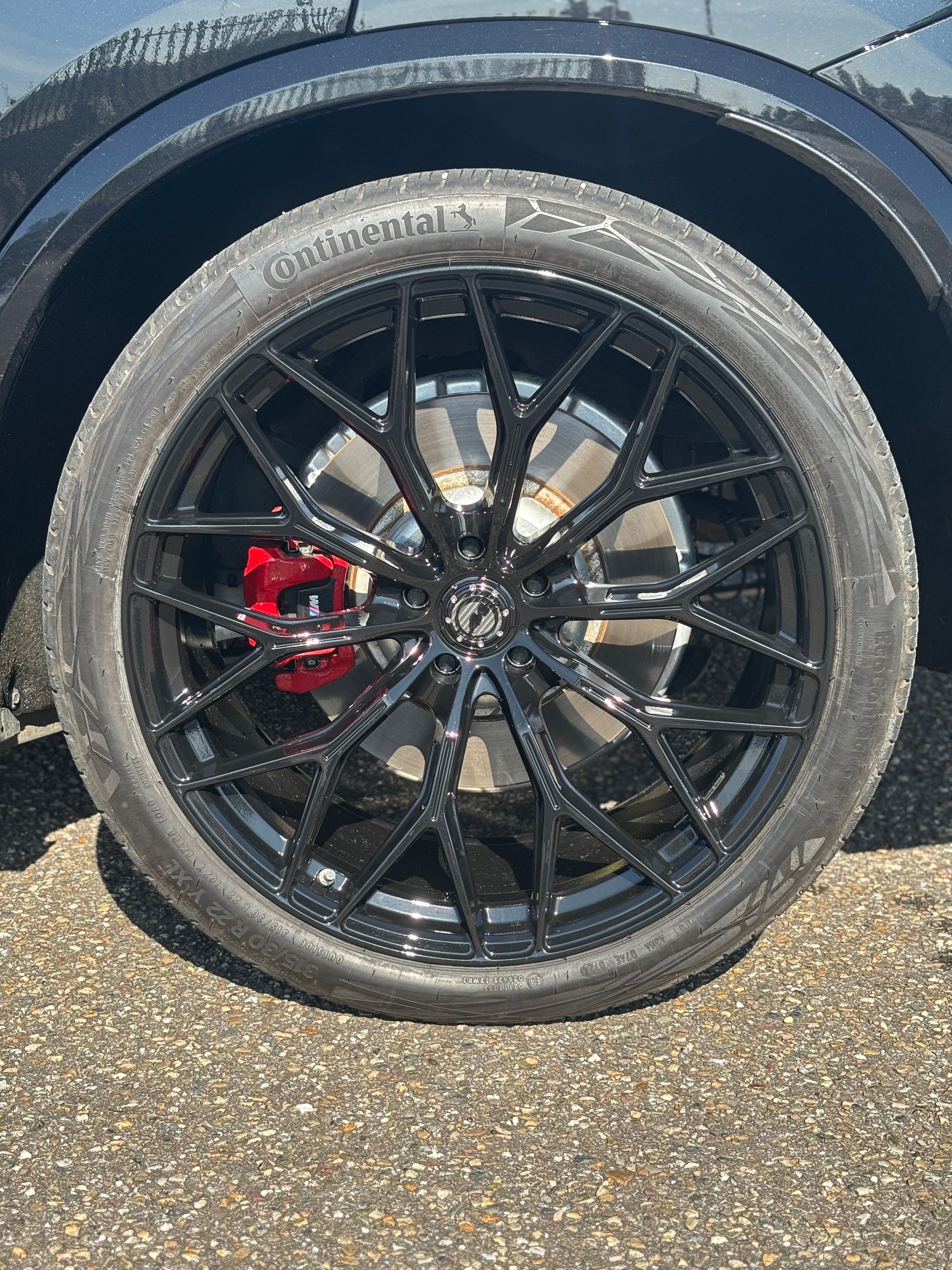 Op deze BMW X5 is ook een M-WX 22'' Precision Black velgenset gemonteerd. De wielset is compleet door banden van continental. Ook is hier weer de rode remschijf terug te zien die ervoor zorgt dat de wielset nog net iets meer opvalt.