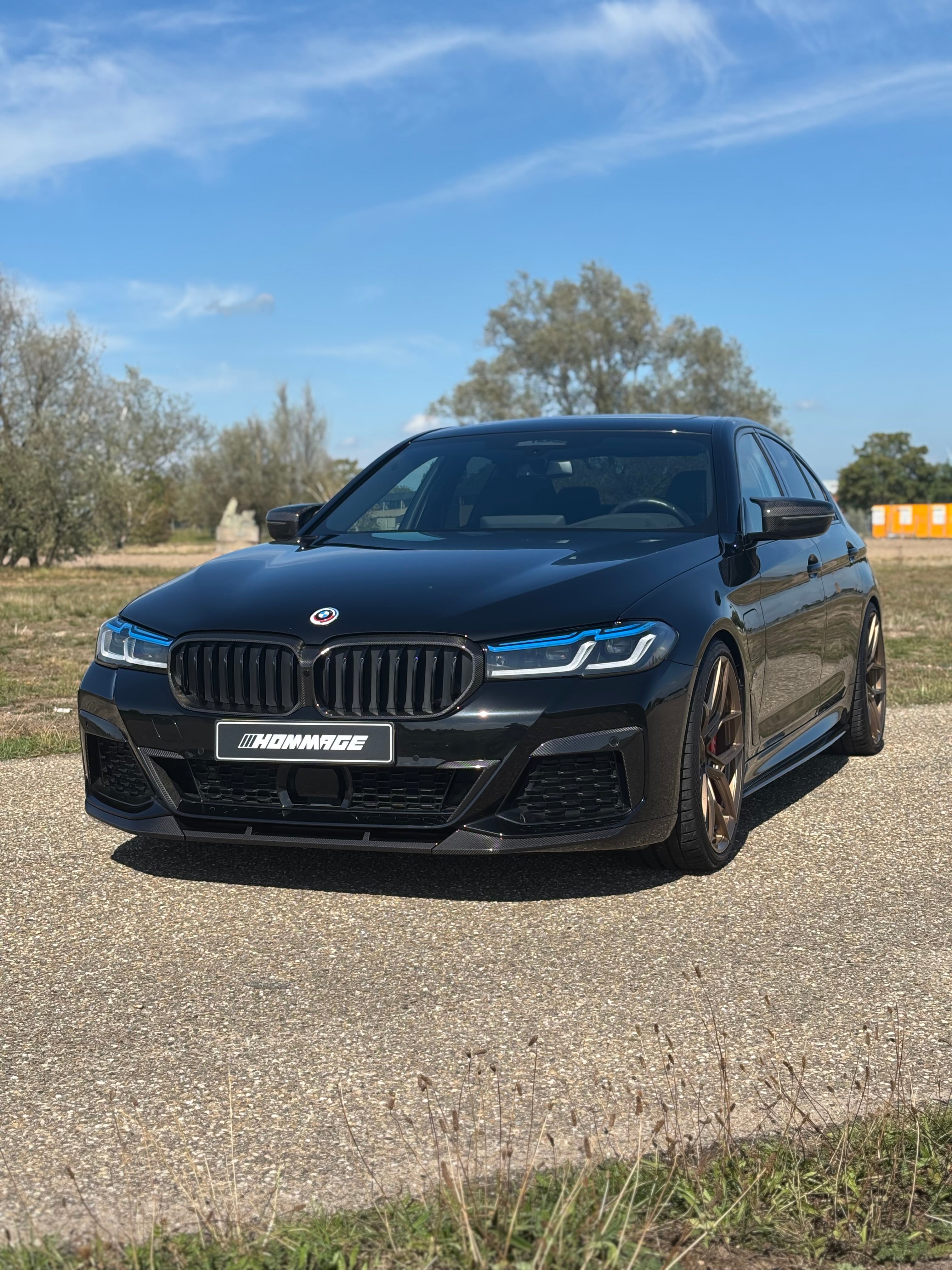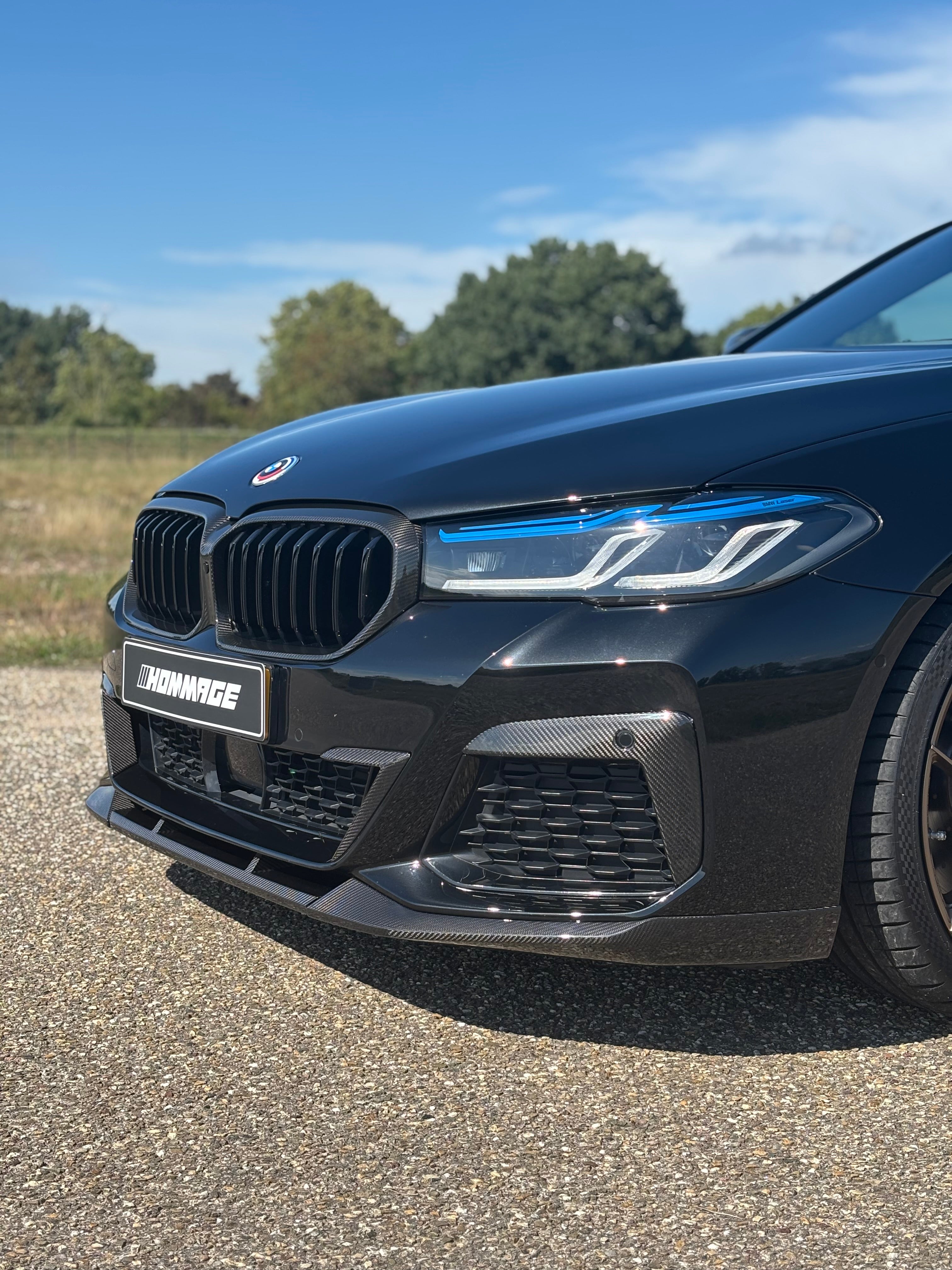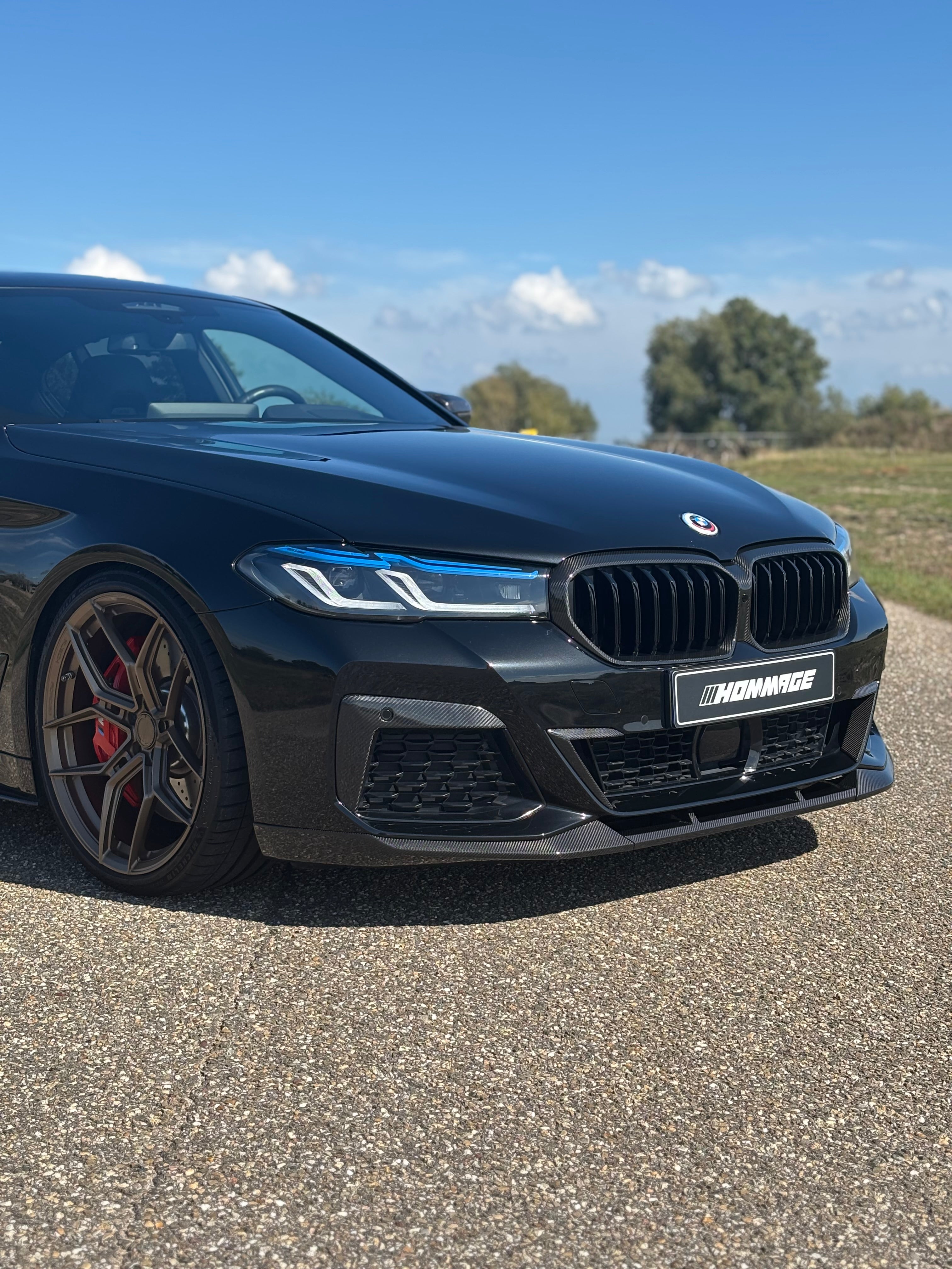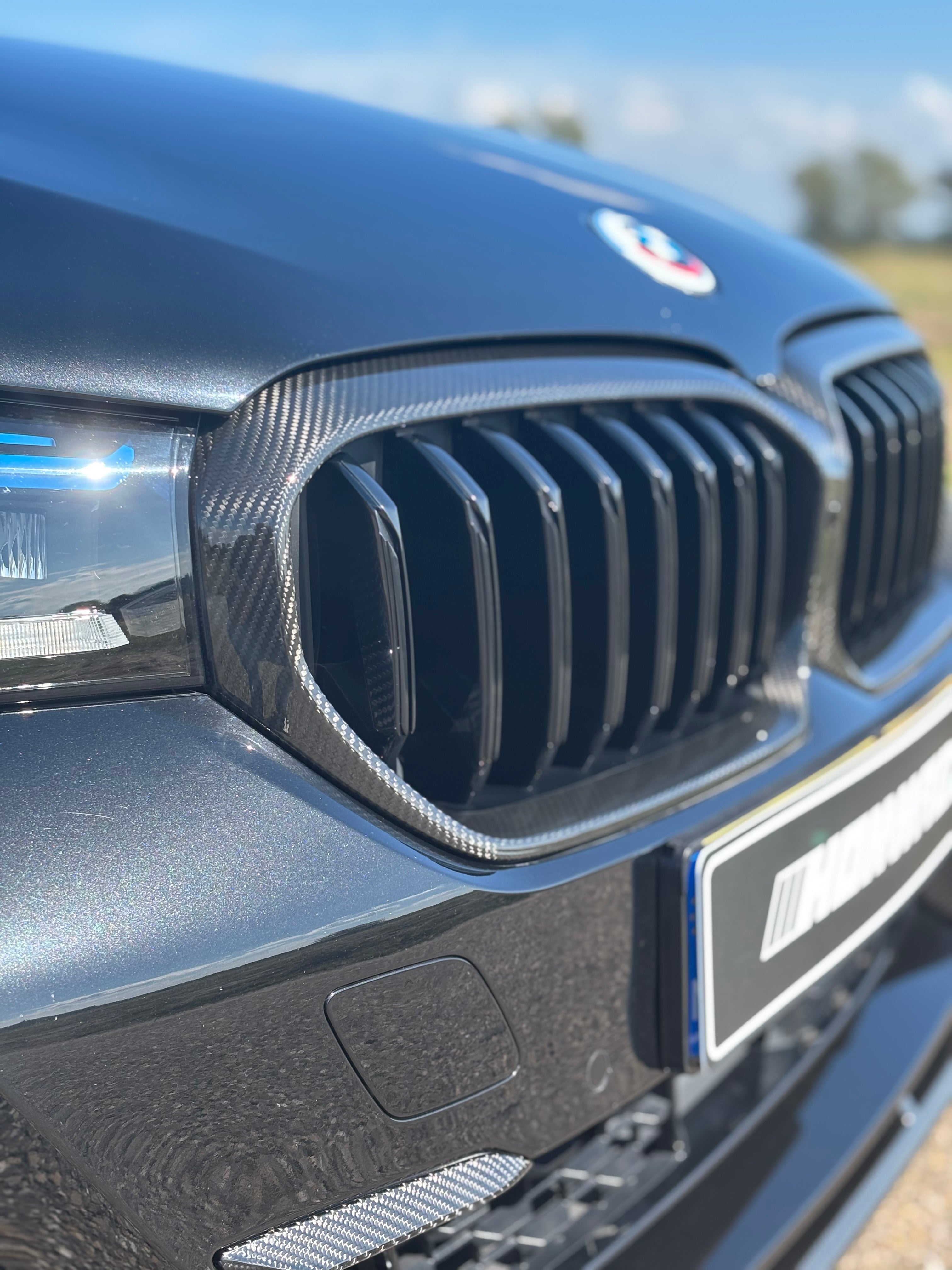 De onderdelen zijn van carbon van het merk M Performance en geven de voorzijde van de BMW 530e een compleet andere look.