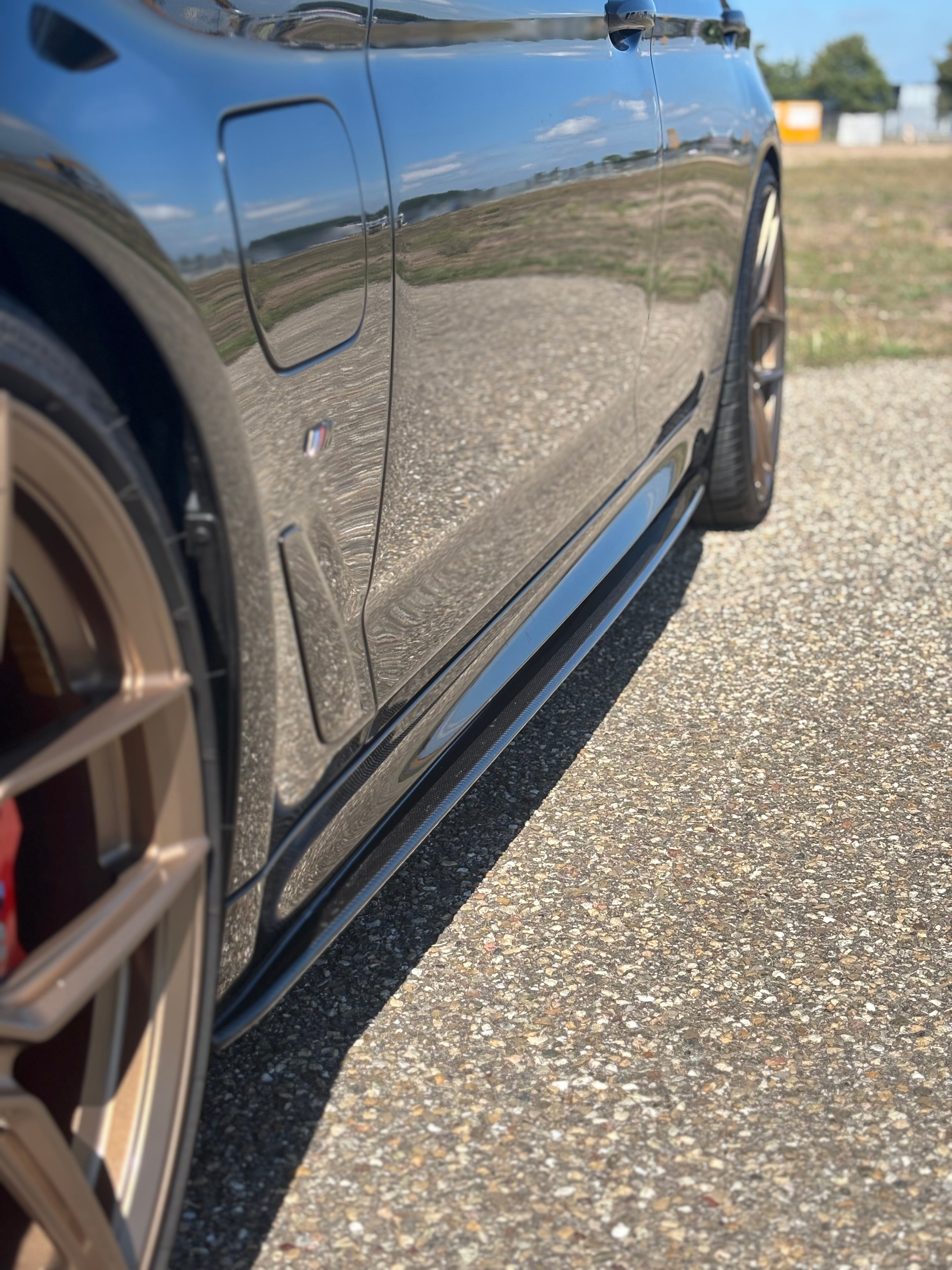 De BMW M Performance Carbon Side Skirts geven de auto een nog dynamischere en bredere uitstraling. Gemaakt van hoogwaardig carbon zorgen ze niet alleen voor een sportieve look, maar ook voor extra aerodynamische prestaties.
