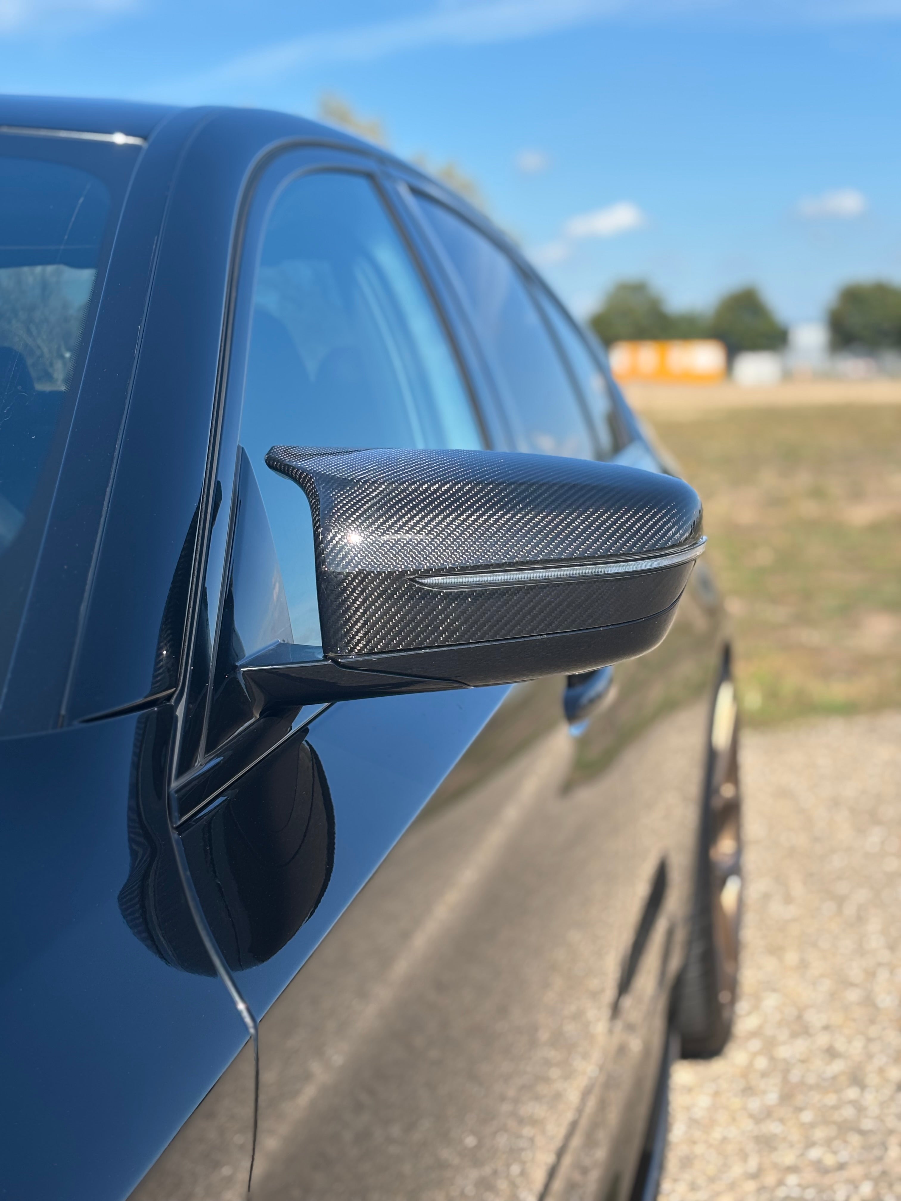 De M Performance Carbon spiegelkappen geven de auto een sportieve en hoogwaardige uitstraling. Gemaakt van lichtgewicht carbon combineren ze stijl met premium kwaliteit en accentueren de dynamische lijnen van de auto.
