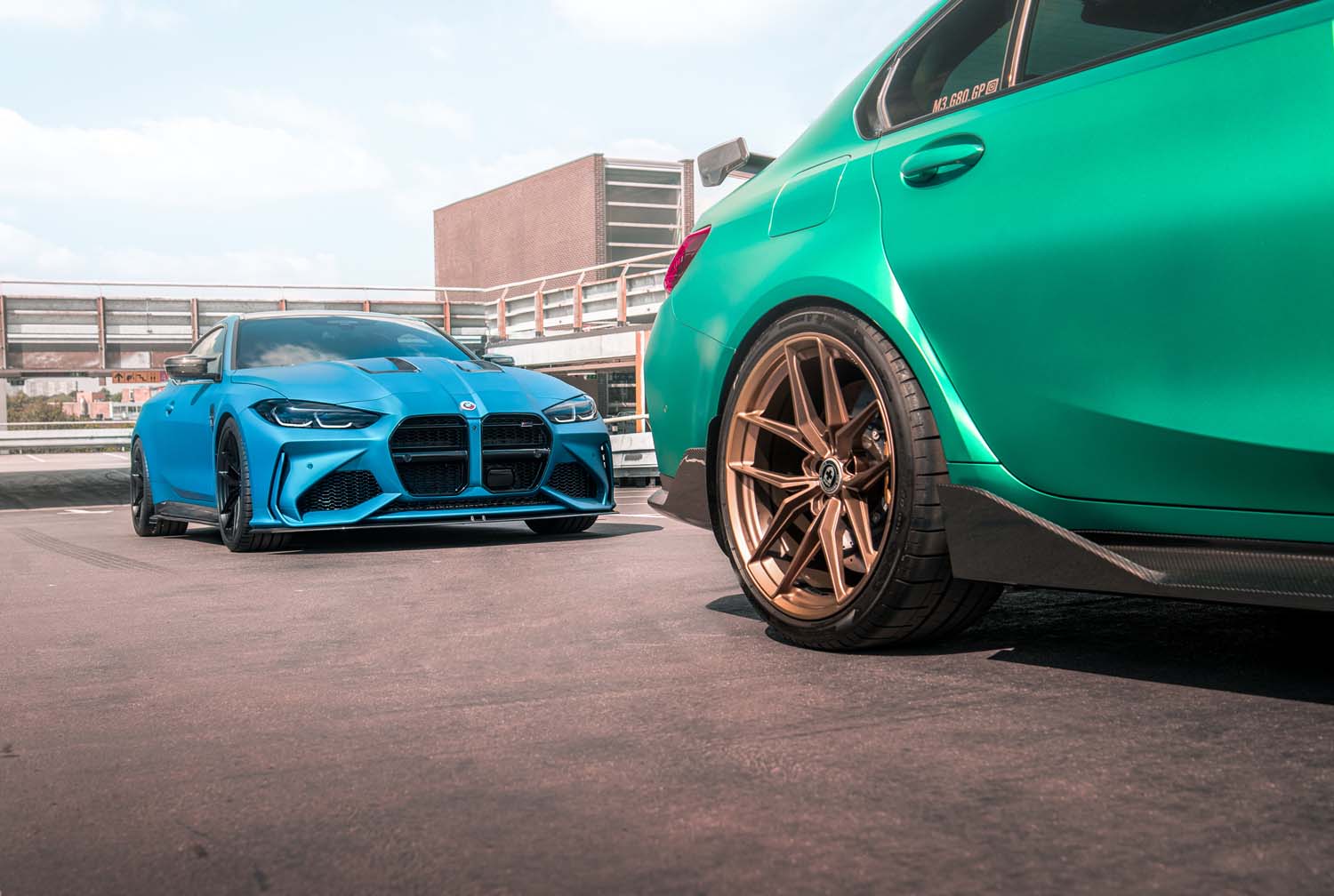 Een velgenset van het merk HRE-wheels. Het is een 20" inch lichtmetalen velgenset FF28 voor M3/M4. De kleur op de foto is tarmac.
