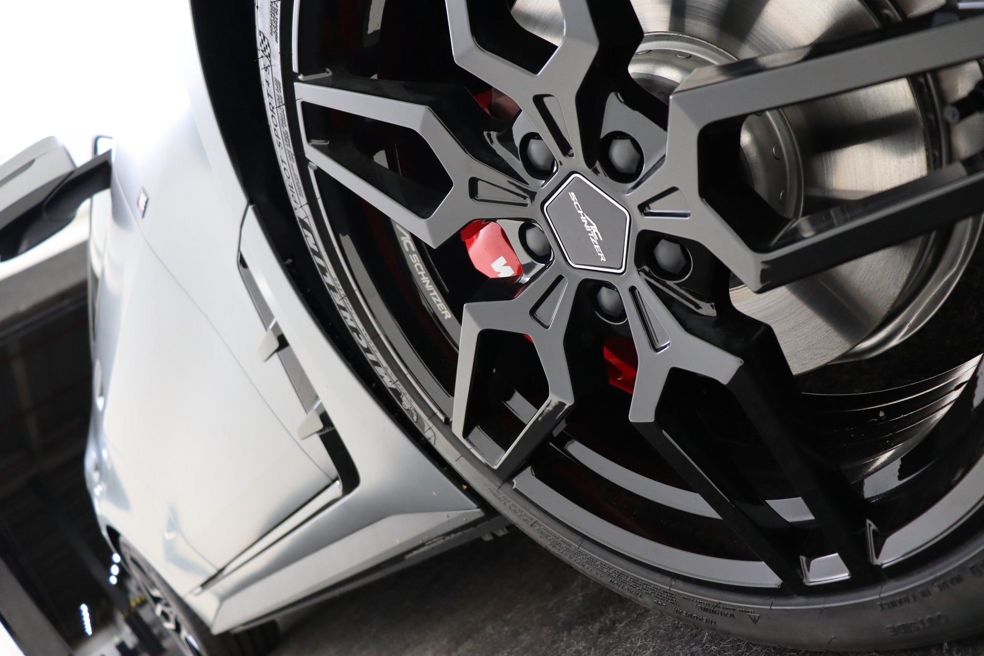 Net zoals de meeste onderdelen die gemonteerd zijn komen ook de wielen van het merk AC Schnitzer. Hommage is de enige aanbieder van AC Schnitzer in Nederland. De wielen zijn 20'' AC4 in het zwart.