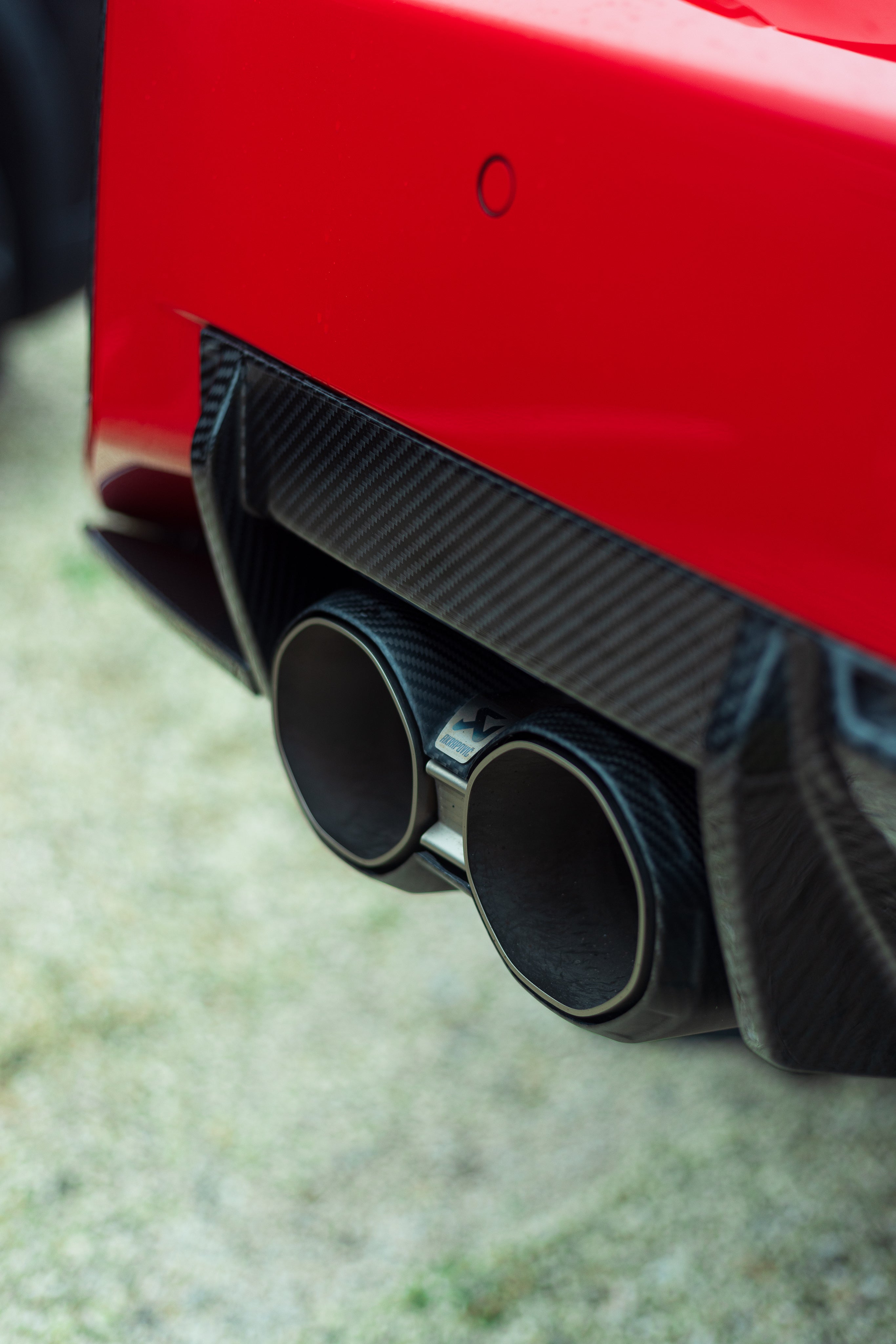 De carbon diffusor geeft de BMW M2 in Toronto Red een extra agressieve en sportieve uitstraling. Dankzij de perfecte pasvorm sluit hij naadloos aan op de achterzijde, alsof hij af fabriek zo geleverd is. Het hoogwaardige carbon benadrukt de prestaties van de auto en voegt tegelijkertijd een vleugje exclusiviteit toe. In combinatie met de opvallende rode lak is het een blikvanger die kracht en stijl uitstraalt.