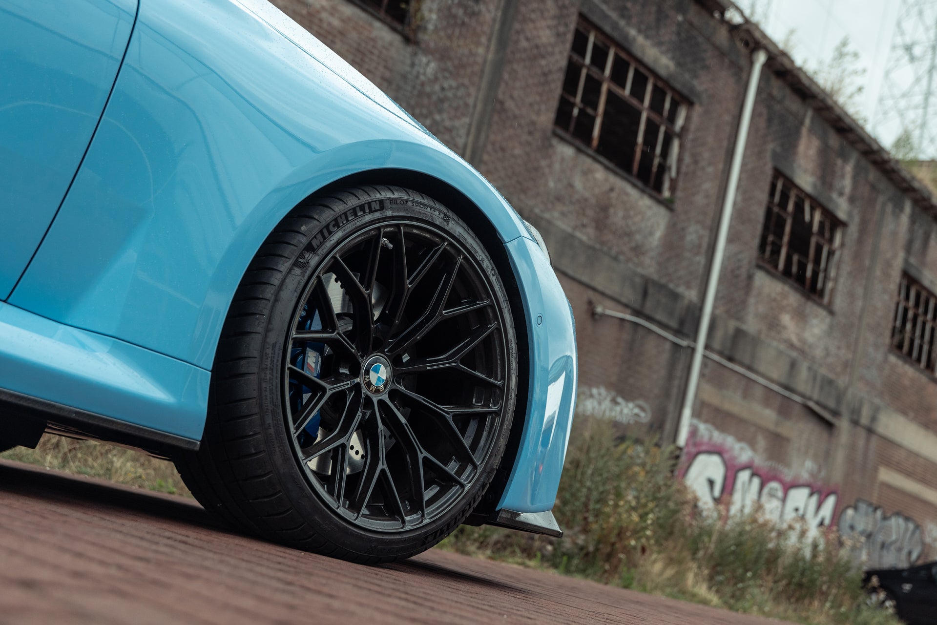 Op deze BMW M2 Coupé is een wielset gemonteerd van het merk Motech Performance.