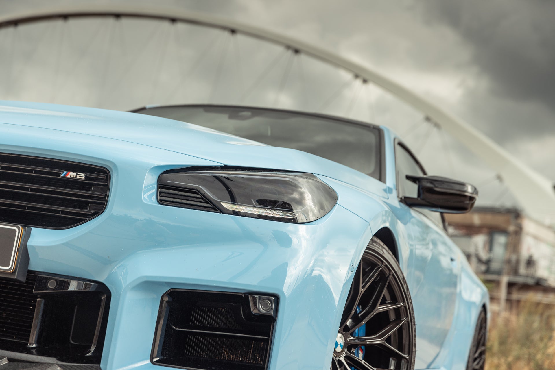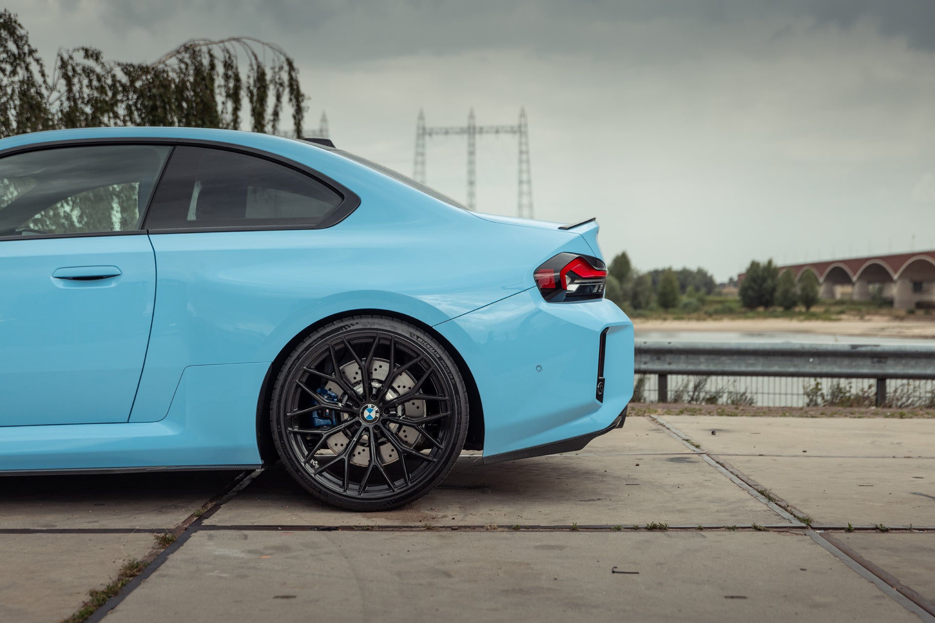 Deze onderdelen zijn hoogglans zwart gespoten. Door de afwisseling van carbon en hoogglans zwarte onderdelen is er een mooi contrast gecreëerd bij deze BMW M2 Coupé.