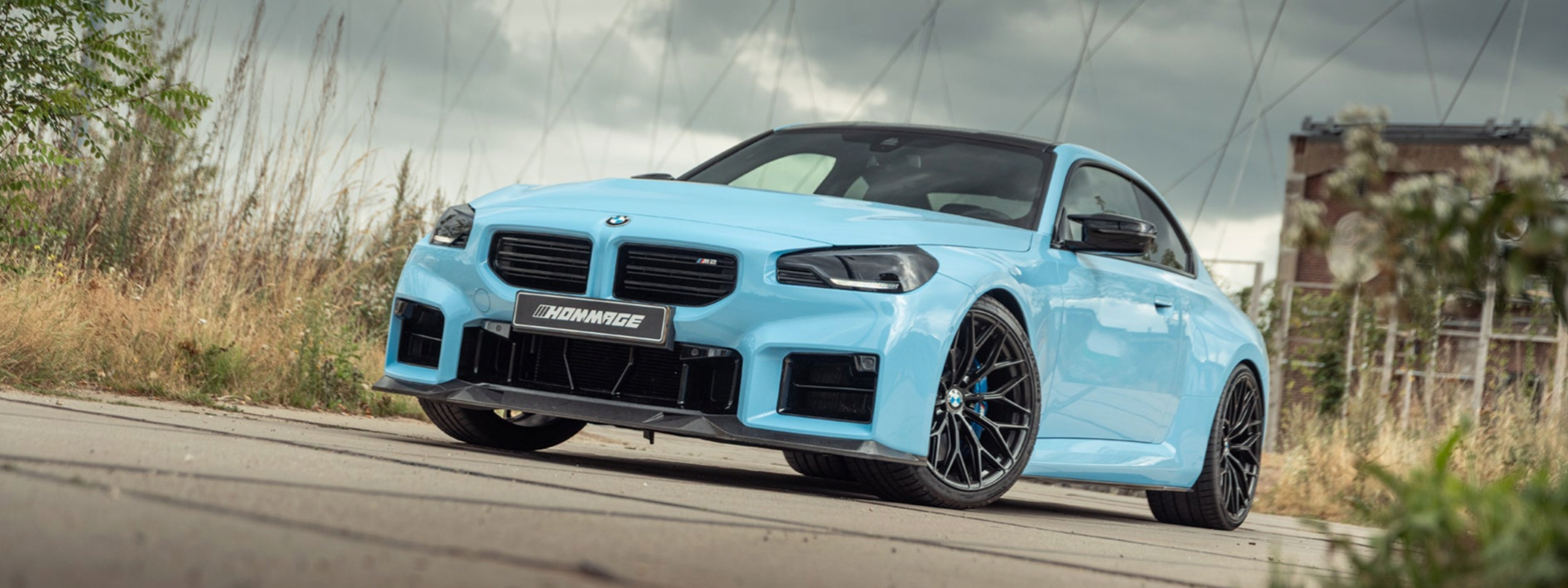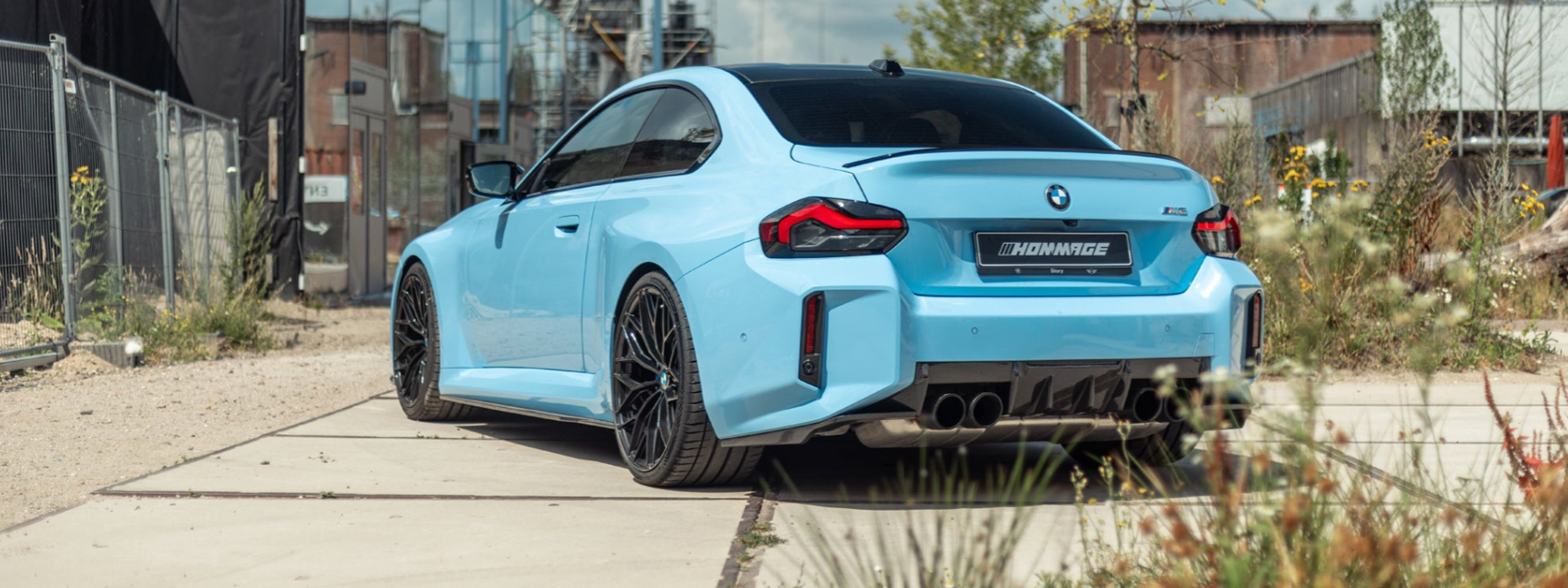Door het exterieur aan de voorkant, zijkant en achterkant aan te passen krijgt deze M2 een compleet andere uitstraling. De carbon onderdelen springen vanuit alle invalshoeken eruit en zijn een blikvanger op deze BMW.